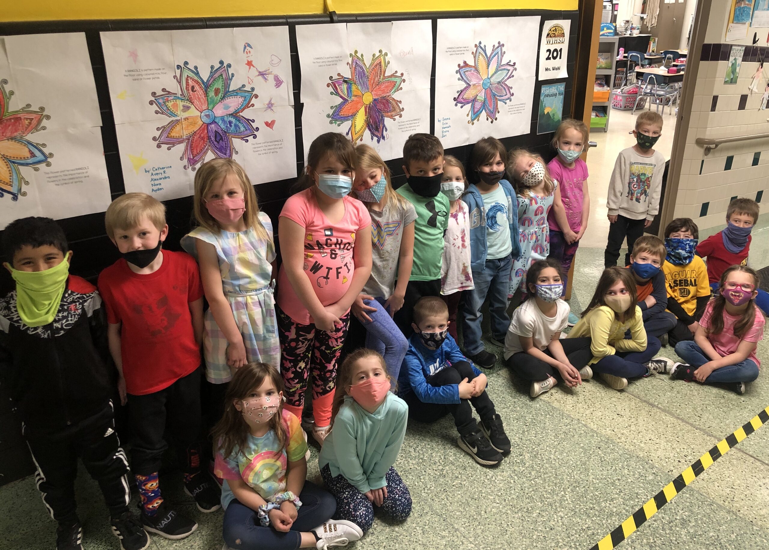McClellan kindergarten students in Mrs. Wahl’s class celebrated the Hindu festival known as “Holi” or the “Festival of Spring” as they learned about the seasons and how other cultures celebrate around the world. The Holi Festival marks the arrival of Spring and is associated with bright colors. To create their own celebration, the kindergartners began by making decorations of chalk people covered in many colors and rangolis. The chalk people represented what the students would like if they actually participated in the festival where people throw powders of bright colors everywhere, and the rangoli represented colorful flower patterns, a traditional festival decoration. The classroom Holi Celebration took place on March 29, 2021, and everyone tried to wear a bright color or one of the colors of Holi. The students thoroughly enjoyed their first Holi Festival, and it was a wonderful way to promote diversity, respect and experiential learning!