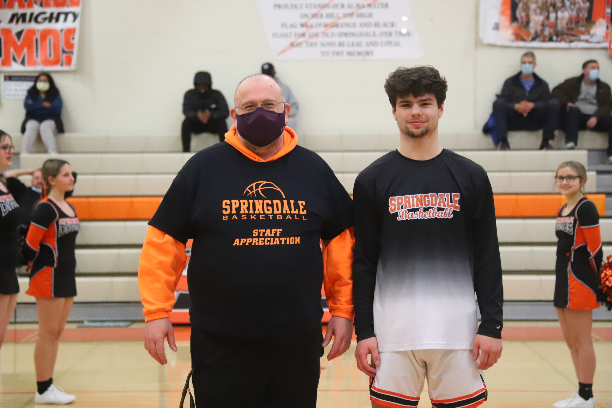 Springdale Jr-Sr High School’s Boys’ Basketball Team honored staff members at a recent game to show their appreciation.Springdale Jr.-Sr. High School Boys’ Basketball Team started a new program in February. Student-athletes were asked to pick an Allegheny Valley School District staff member who they wanted to recognize. It could be someone they look up to, someone who inspires them, someone who makes them laugh every day or their favorite person in the school. The team recognized these individuals before the varsity game.