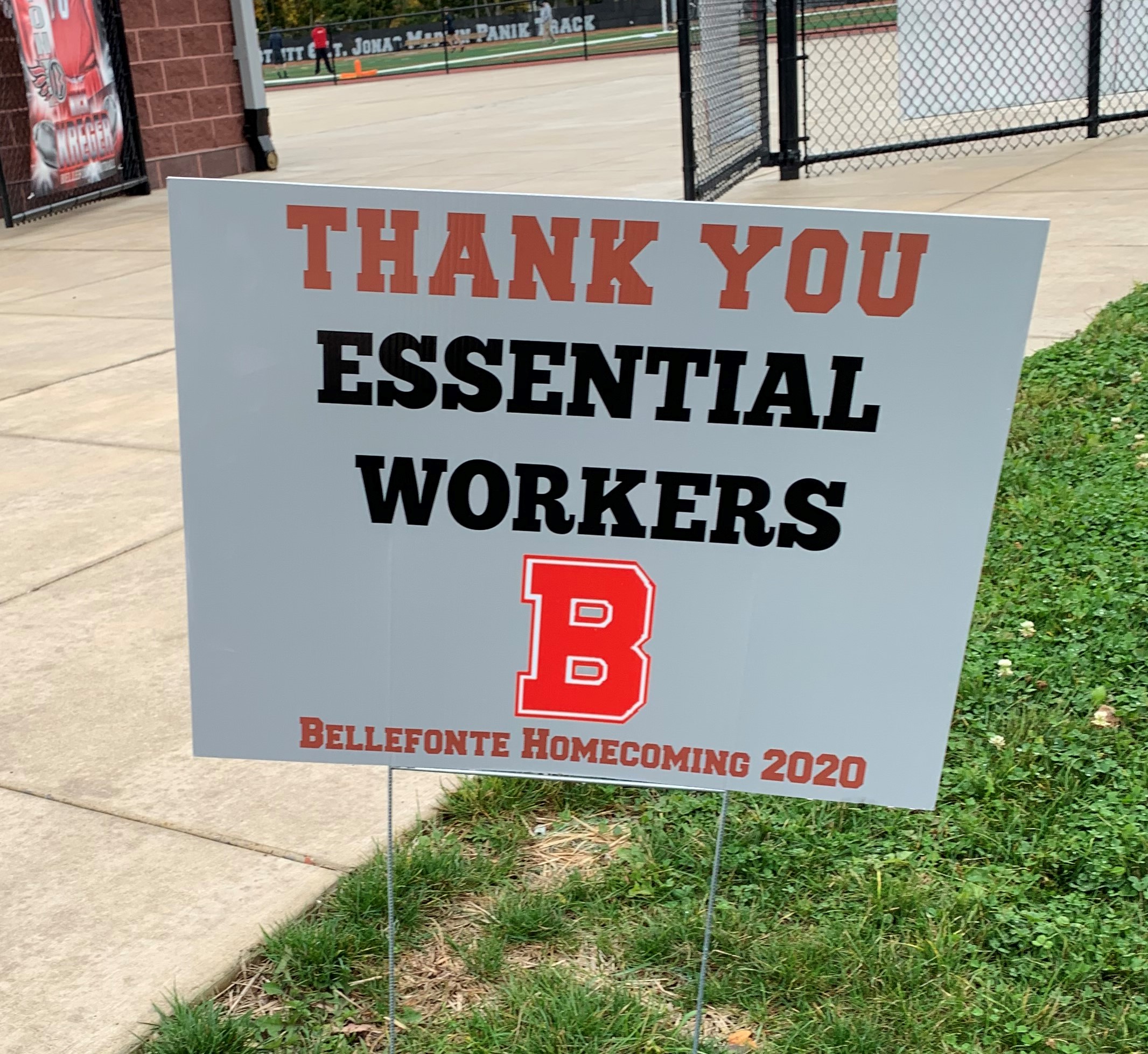 Sign to honor essential workers continuing to serve the community during the pandemic.Even during a school year under COVID-19 pandemic restrictions, Bellefonte Area High School still found a way to hold homecoming activities.
