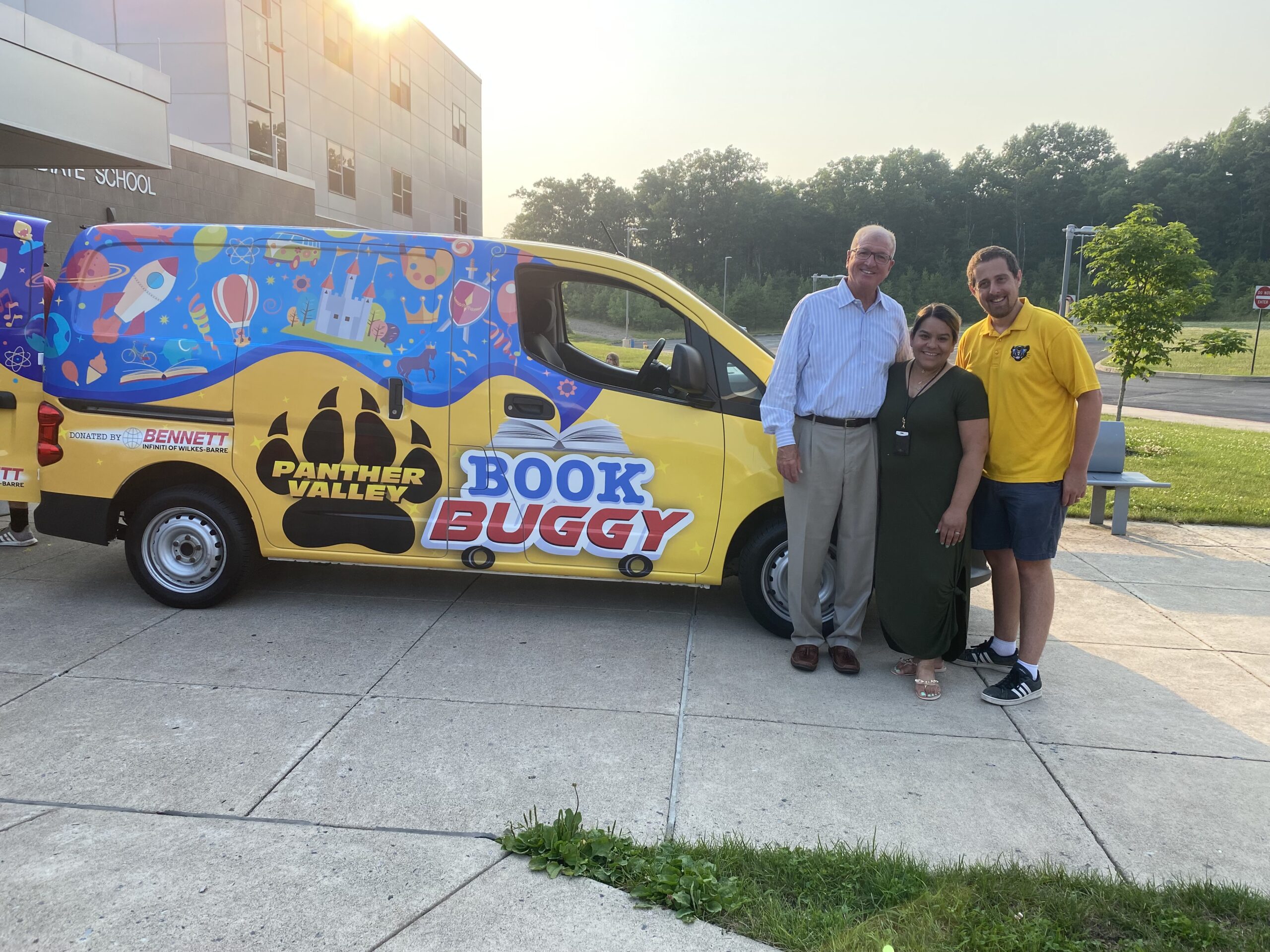 Pictured are Robert Palazzo (elementary school principal), Nicole Pollinger (United Way CarbonCorp), and Rob Bennett (Bennett Automotive Group)Panther Valley School District and Bennett Toyota launched the Book Buggy to bring free books into the community throughout the summer and school year. This project was facilitated in collaboration with Nicole Pollinger from United Way CarbonCorp. Each week in the summer, the Book Buggy will travel throughout the district giving out free books to anyone in the community. Students will be able to choose from a variety of books and either keep them or return them. The mobile library will also be at football games and local community events during the year.