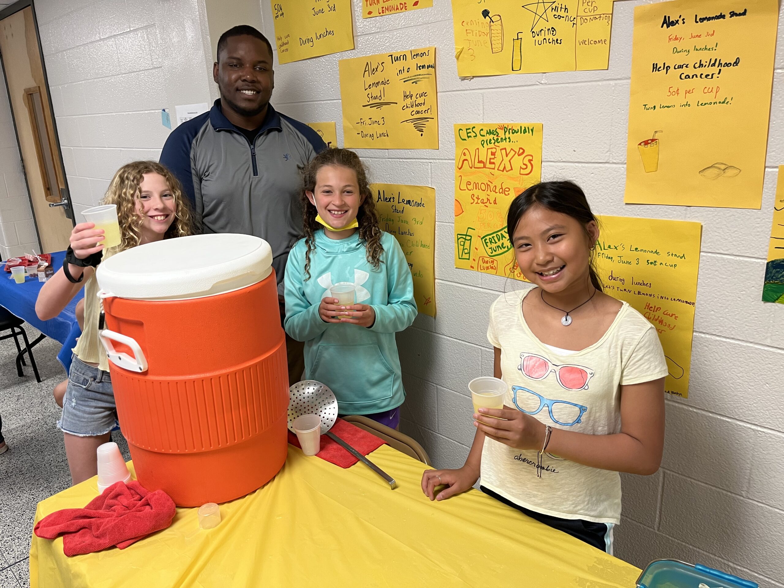 Nearly 100 students volunteered for the event through the club CES Cares. There were two meetings to plan the stands, record commercials and make signs. When the big day arrived, the children gave up their recess time to make and sell the lemonade during lunches.