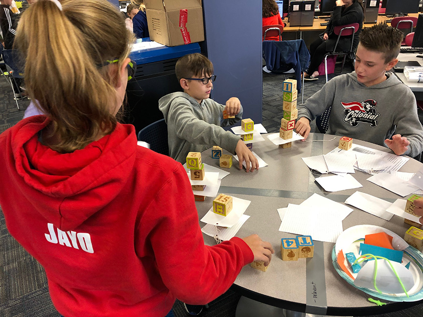 “I liked the blocks,” said CMS Sixth Grader Jacob Ingram. “You make a tower of blocks with cards between them and then you pull the cards out. The blocks don’t move if you pull each card out fast enough. I just thought it was fun to try to beat the record of the person who did it before me who had nine blocks in their tower. I like a challenge.”