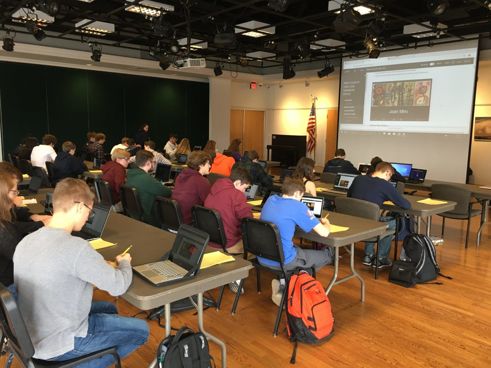 During Computer Science Education Week, students in Mrs. Lint’s AP Computer Science classes participated in a hands on coding activity, led by Google employees Larry Adams, Product Manager/Software Engineer, and Vinesh Kannan, Software Engineer, from Google’s Pittsburgh office, as part of Google’s high school outreach program.