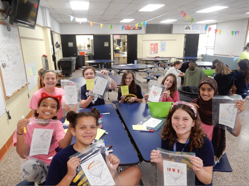 In Blair Mill’s gym, the students sat in groups and made after-school snack bags for North Penn Valley Boys and Girls Clubs. The students decorated the outside of the snack bags and made sure each bag had the necessary ingredients for a delicious after school treat. One student said, “This part is important because some people don’t have snacks and we make it so they do.”