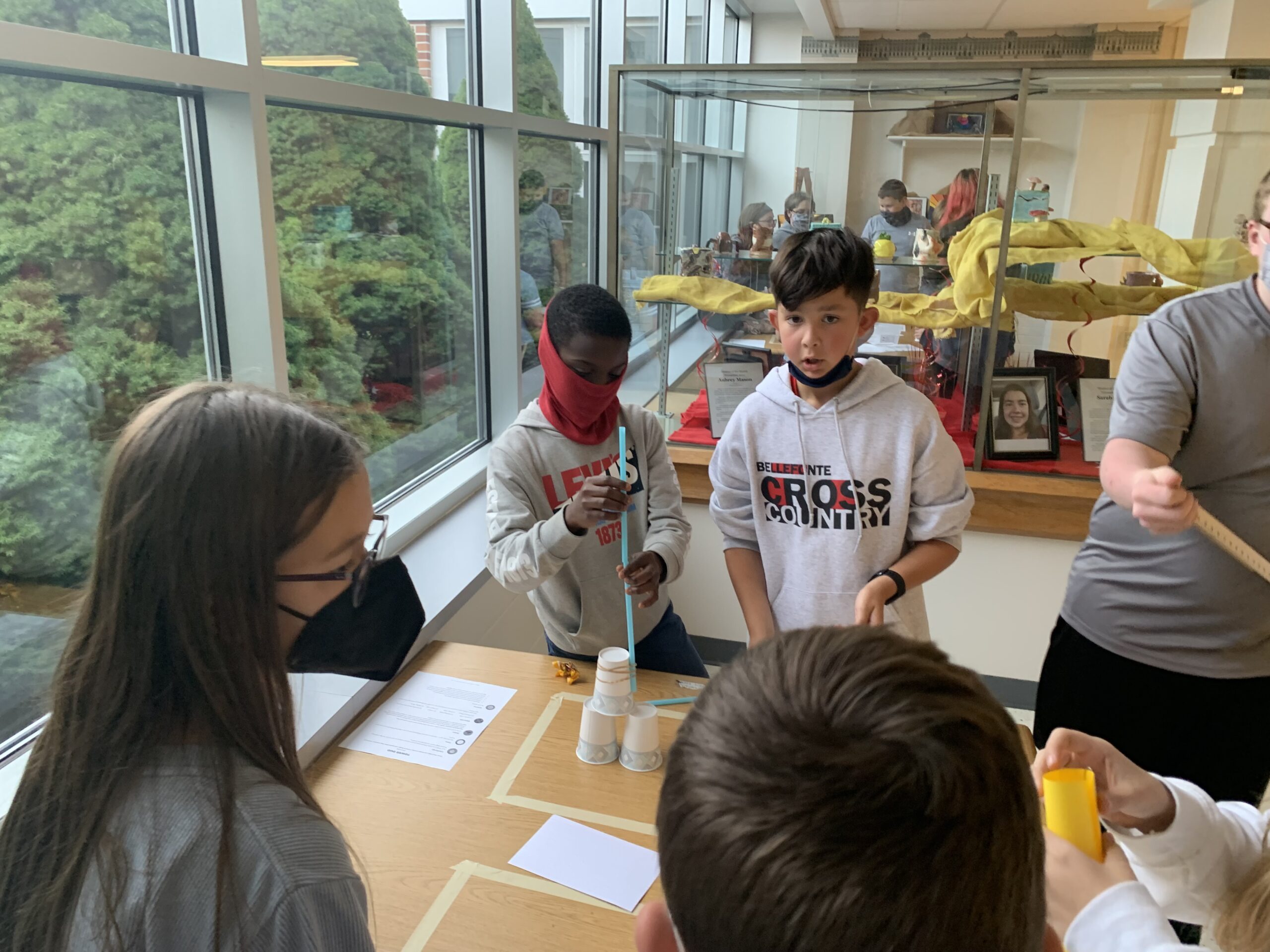 Seventh-grader Daniel Olamoyegun, said his team worked together by stacking cups and using rubber bands to hold together other items for a tower that was more than 30 inches high. He added that while one part of his team was working on the first tower idea, other student members of his team were brainstorming ideas for the second tower.