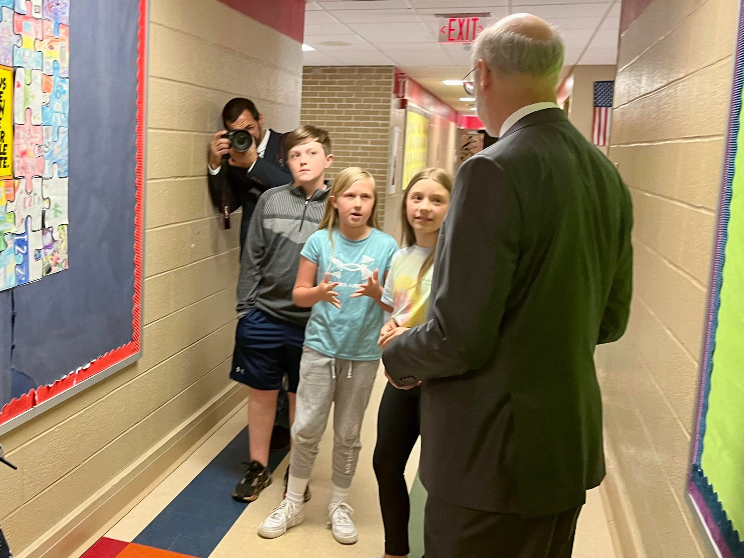 Fifth-grade students Malayna Kuhlman, Kiyah Henry and Landon Sykes also gave Gov. Wolf a tour of the school.