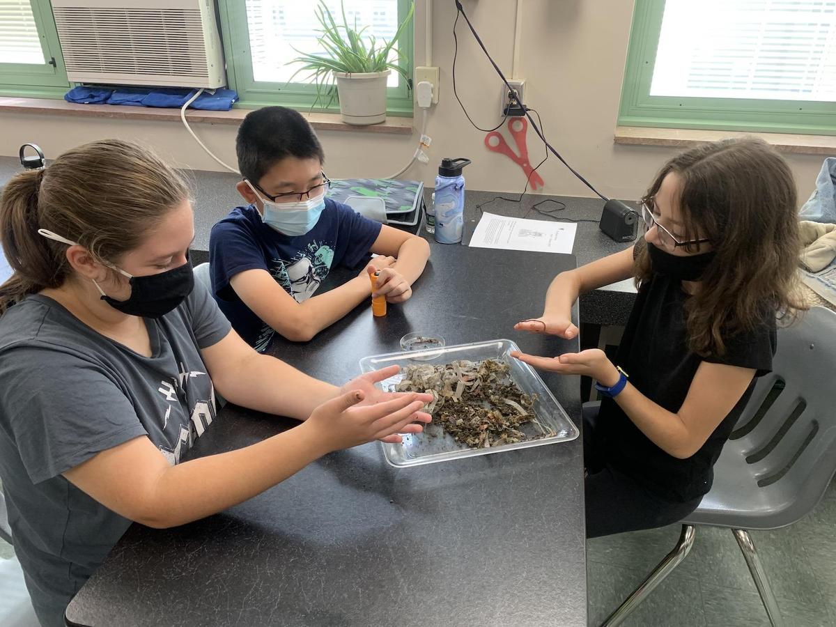 Students examine the composted materialMrs. Carol Tinsley, a science teacher at Trafford Middle School in Penn-Trafford School District, invited Ms. Reese from Westmoreland Cleanways and Recycling to visit her seventh grade classes for a presentation on decomposers in an ecosystem and to introduce how decomposers help cycle matter in an ecosystem. The class also covered how using worms in vermicomposting can be done at home to help the environment. Mrs. Tinsley now has a vermicomposting bin on loan in her classroom, which will enable the students to observe the worms at work.