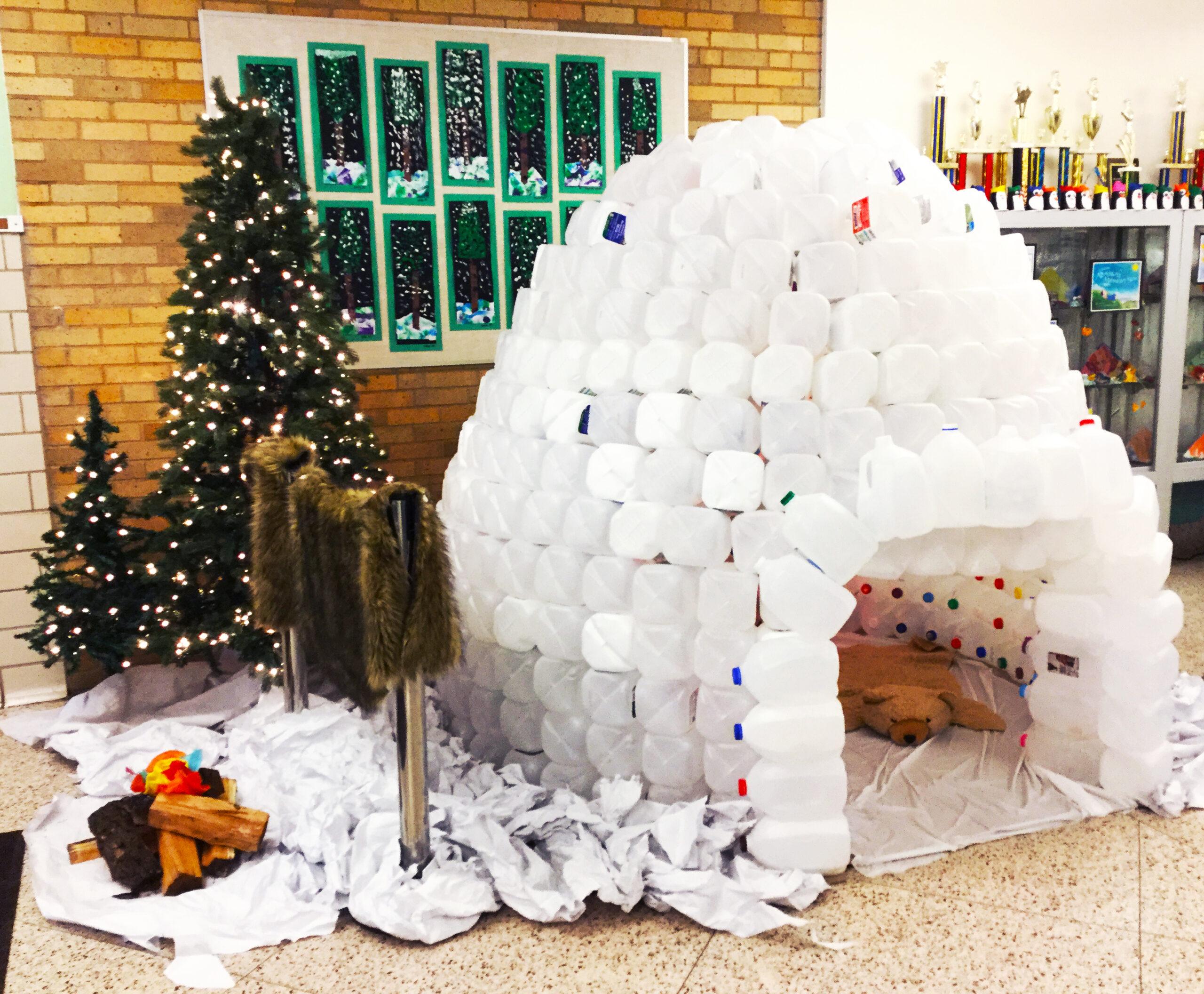 Students and their families experienced a taste of Arctic living through interactive activities that included: exploring an igloo made of 400, one-gallon containers; an Iditarod Race where students rode a cart “pulled” by a stuffed animal sled dog; a River Run where students sat in a canoe and towed their supplies across the icy river; ice-fishing; penguin waddle where, you guessed it, students dressed up as penguins and balanced an egg on their feet as they waddled a distance; narwhal ring toss; and a Northern Lights experience.