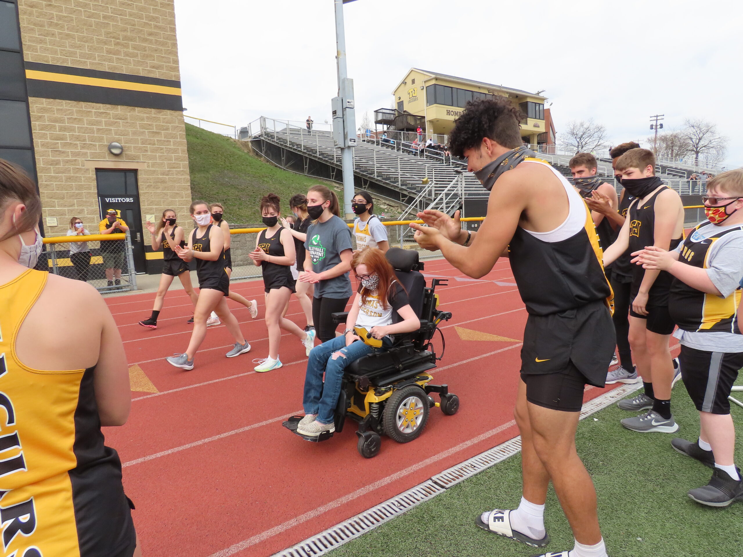 On Thursday, March 25, the Thomas Jefferson High School (TJHS) track and field Team partnered with the TJHS Best Buddies program to host a very special intra-squad meet at TJ Stadium. Students from the middle school and high school Life Skills programs were invited to participate in the inaugural Black and Gold Invitational, where they competed in three events before taking their places on the risers and receiving medals. The TJHS Best Buddies program provides students who have any type of disability with a peer mentor from the school. The school’s chapter is linked to the international nonprofit Best Buddies, dedicated to ending the social, physical and economic isolation of people with developmental and intellectual disabilities.