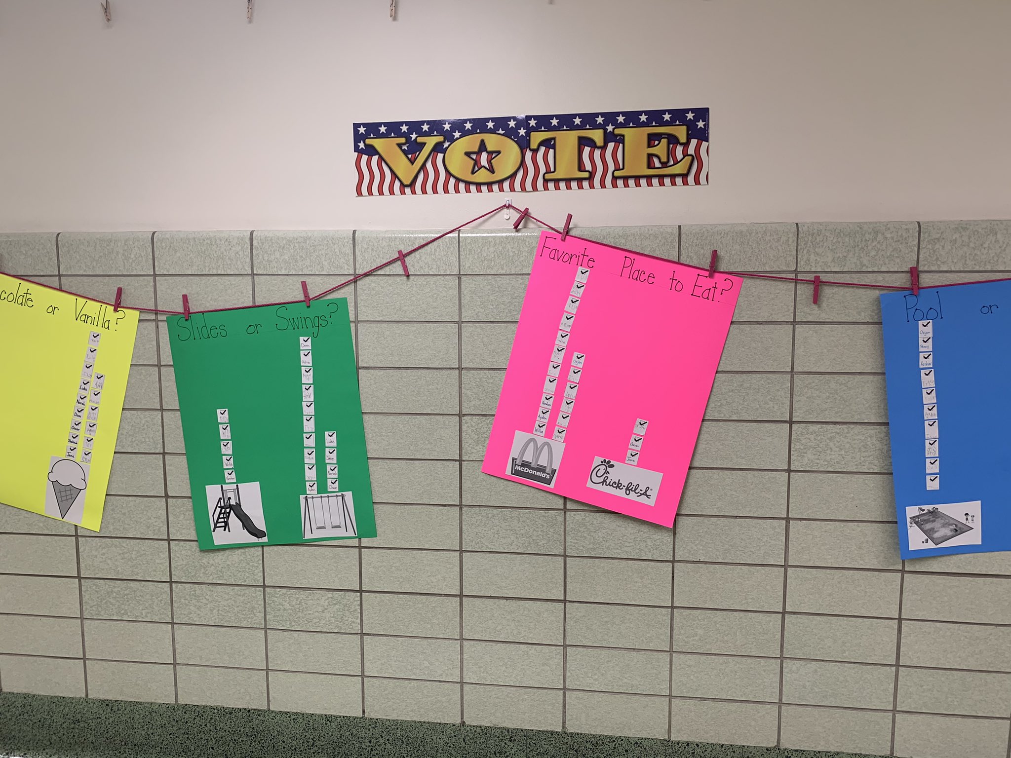 McClellan Kindergarten students have been learning all about elections and sharing their opinions on what matters most to them in kindergarten. They celebrated Election Day by learning more about the voting process and even had the opportunity to vote on some very important issues raised by their classmates! Some of the kindergarten election hot topics included their preference of Chocolate vs. Vanilla, their favorite place to eat, or whether they prefer playground swings or slides. It was a wonderful day to to get the students excited about Elections Day and learn about the democratic process.