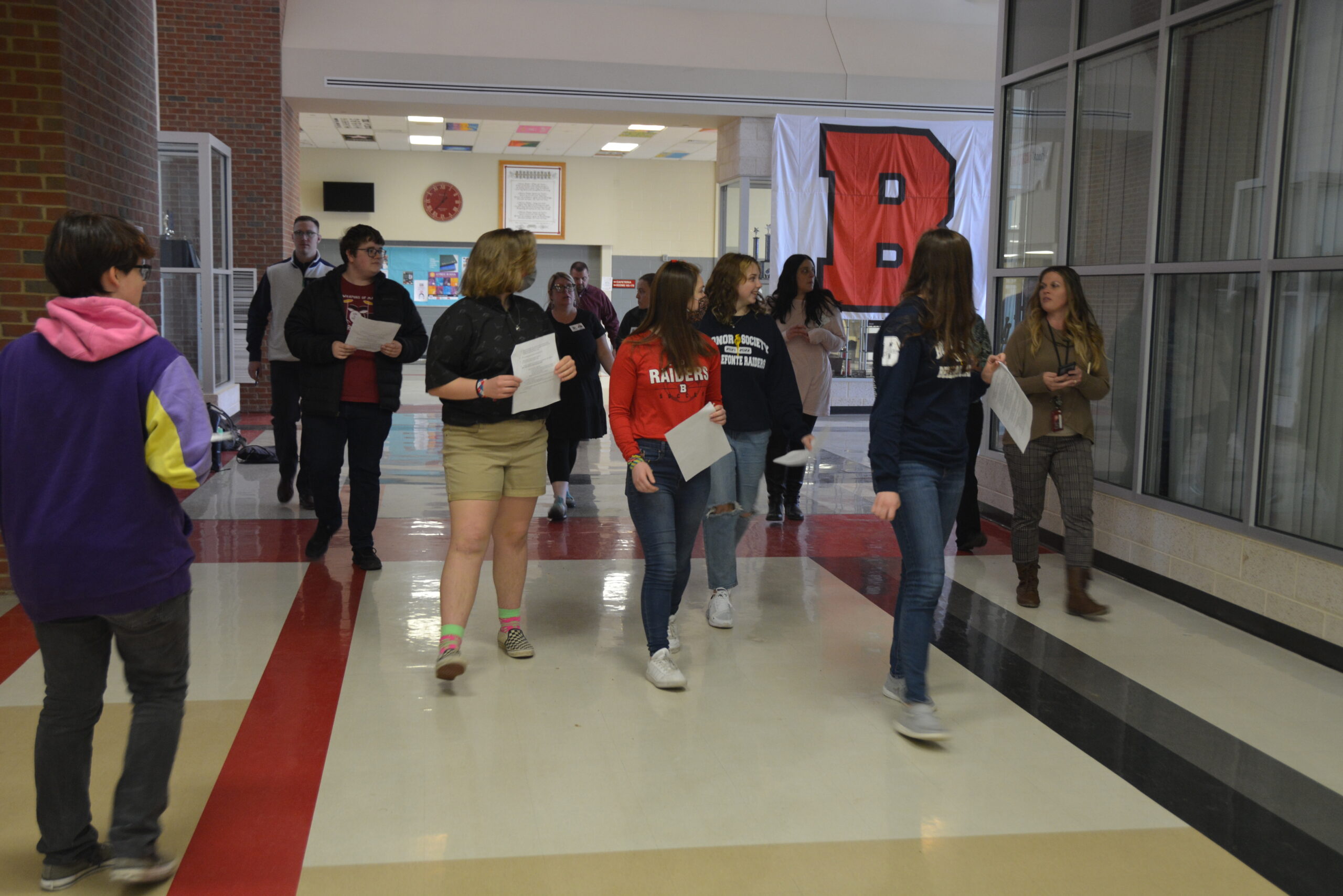 Students who are a part of Raider Revolution had the opportunity to sign up to help give the tours, including several students with past experience giving school tours to new students. The mission of Raider Revolution is to create and promote a safe and positive school environment that establishes a welcoming atmosphere, enhances student learning, and encourages student growth by demonstrating and recognizing positive behavior.