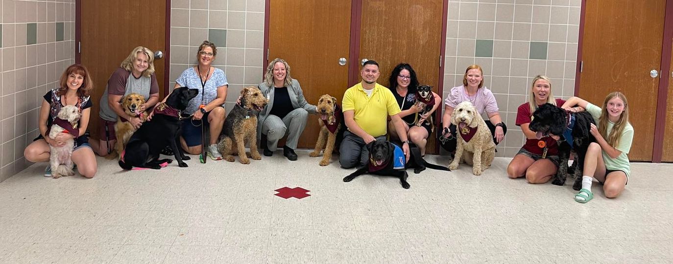 Through grant funding, the faculty/staff of the California Area School District are helping to make a more “pawsitive” culture and climate for our kids. Through a partnership with Off Leash K-9 Training and Therapy Dogs United, there will be nearly a dozen resident therapy dogs in our district this upcoming year.