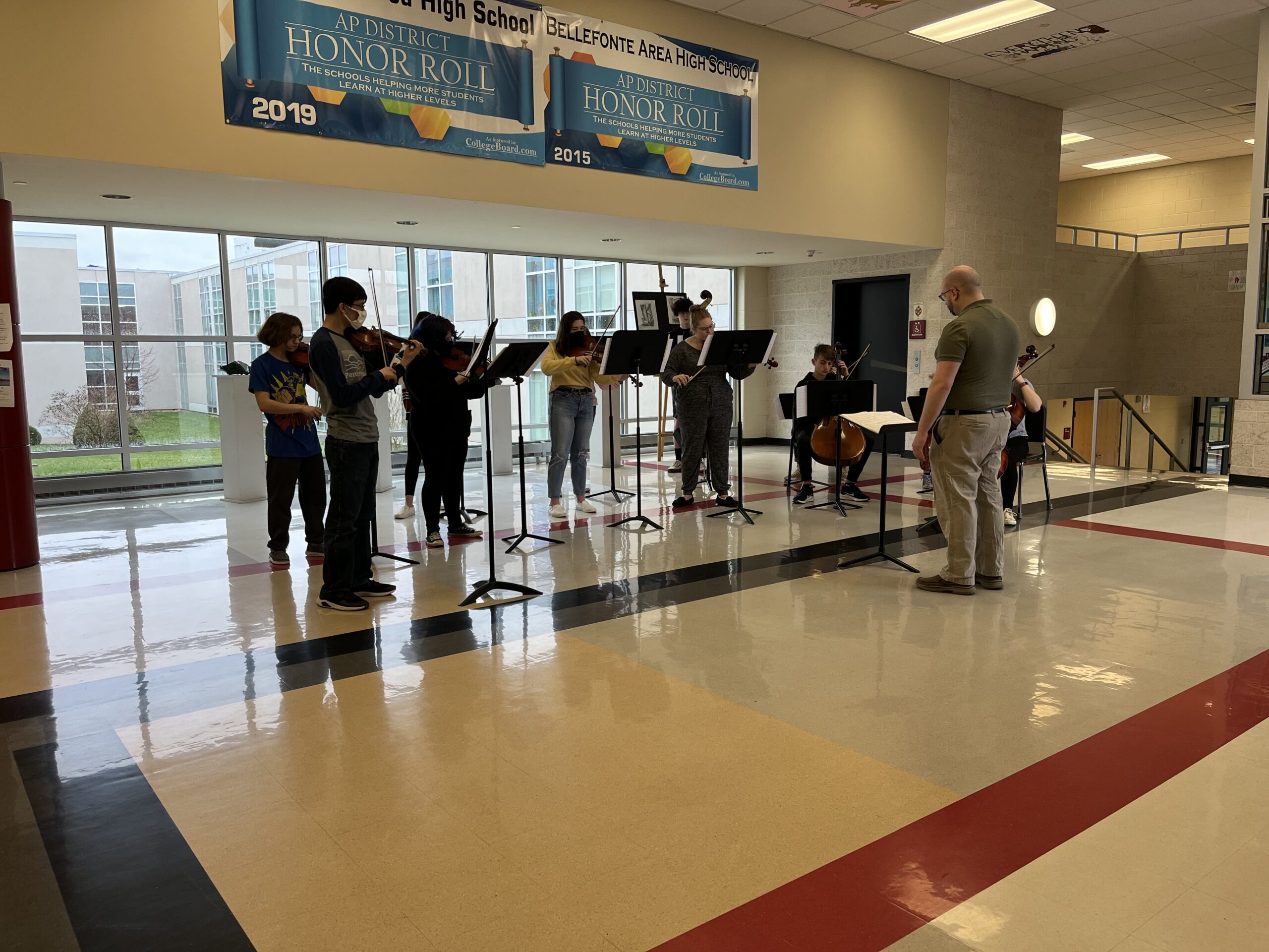 The sound of music could be heard at Bellefonte Area High School this spring as student members of string orchestra, led by Orchestra Director Anthony Fortuna, played recordings of various tunes for their early spring performance.