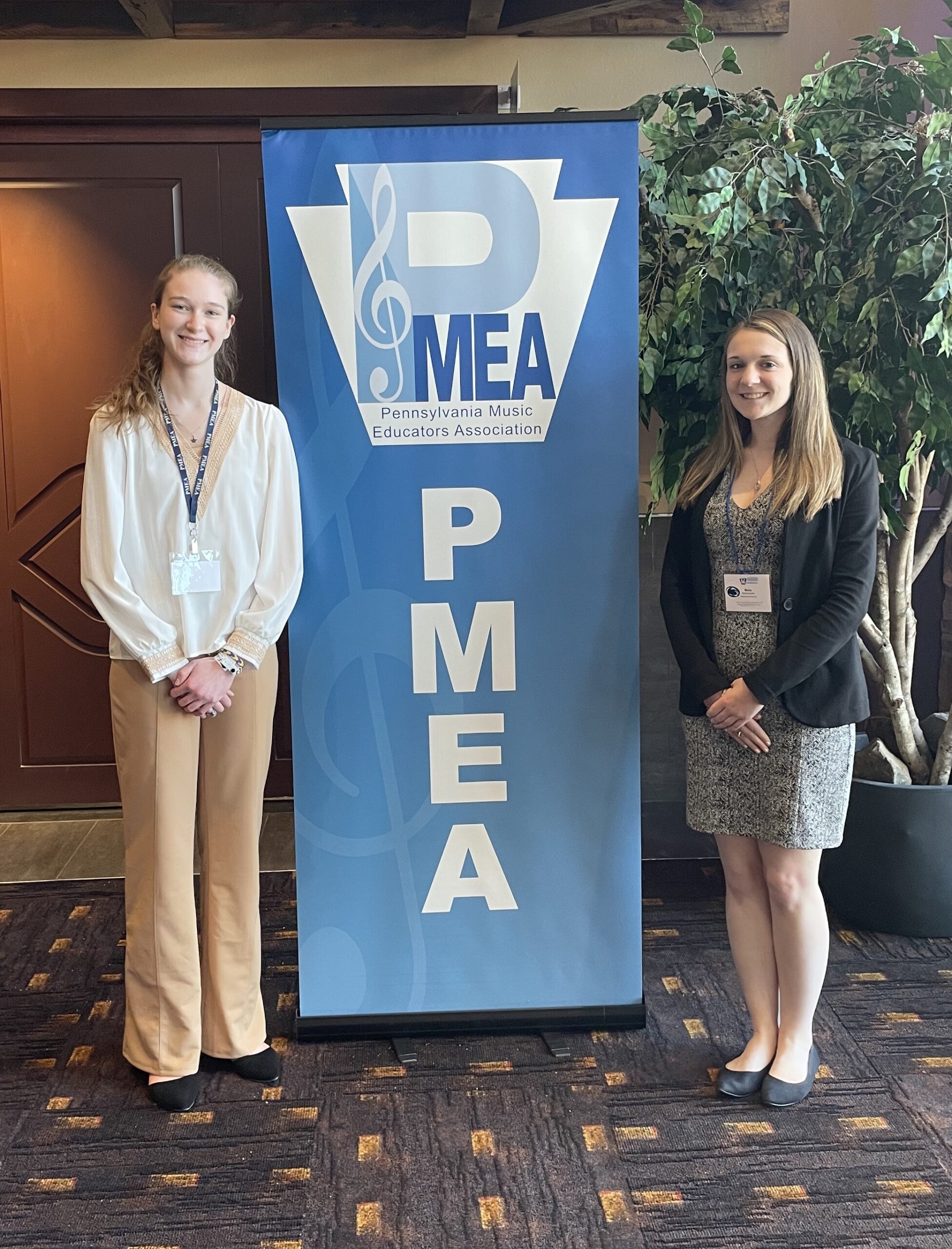 Accompanied by her teacher Ms. Malia Mueller (R), Grace Heist (L) attended the PMEA Future Music Educators Honors Symposium from April 7-9, 2022.From April 7-9, 2022, Palmerton Area School District (PASD) senior Grace Heist attended the Future Music Educators Honors Symposium (FMEHS), which was sponsored by the Pennsylvania Music Educators Association (PMEA). Grace was one of only 13 high school students in Pennsylvania chosen to be a part of the FMEHS. At the Symposium, Grace made connections with the 12 other high school seniors from PA as well as other influential people in the field of music. Grace spoke with Tim Lautzenheiser, one of the writers of the Essential Elements for Beginning Band books, a book that all music educators use to teach children music. Grace met instrumentalists from Pershing’s Own United States Army Band, who gave her tips about being a good instrumentalist. Grace had the opportunity to hear speeches given by music educators who have taught all over the world. She also attended seminars that covered various areas of music education such as choral, orchestral, elementary education, and teaching diverse students.