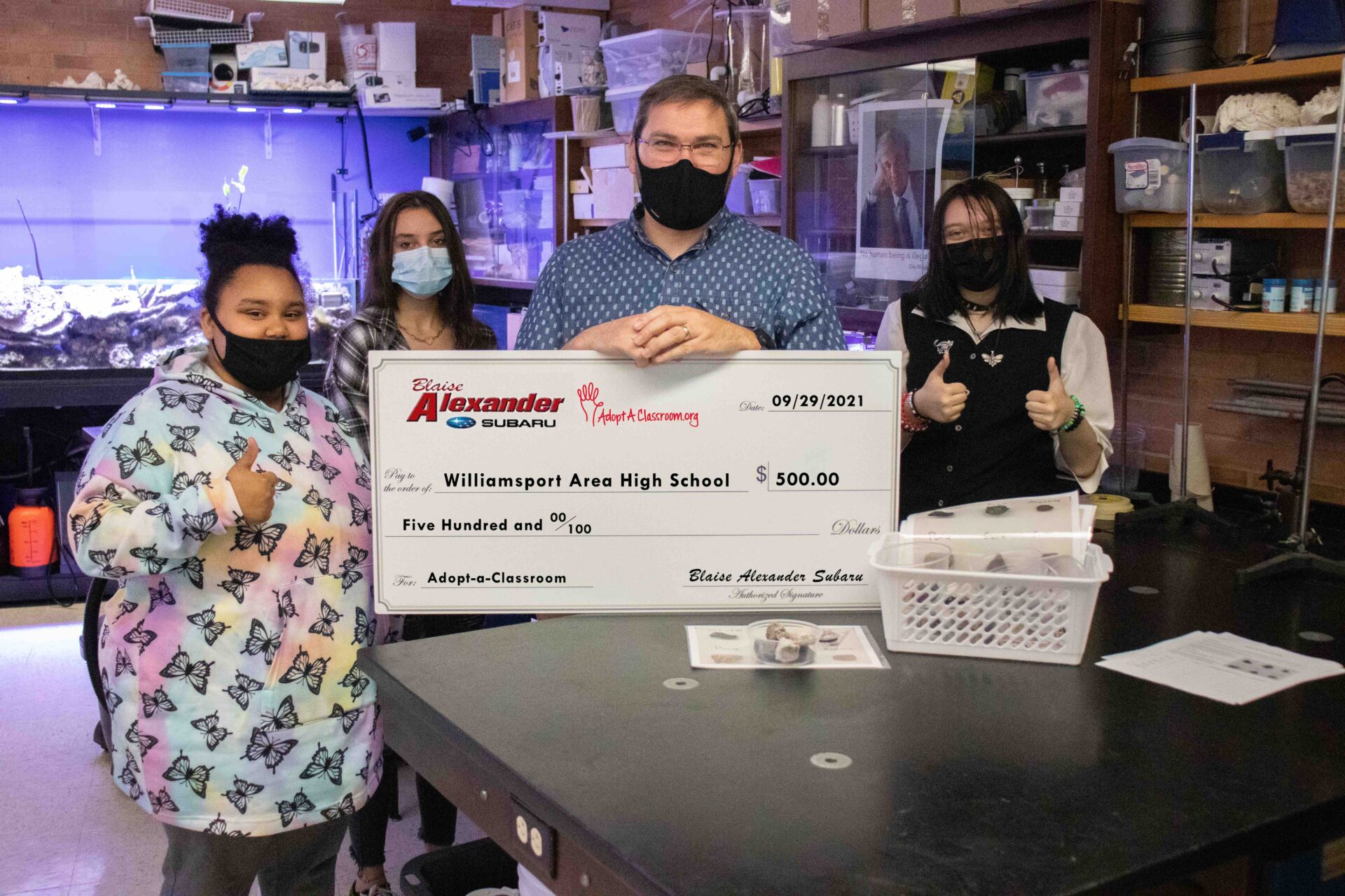 Williamsport Area High School teacher Larry Flint is one of five educators at the district who received a check from Subaru for classroom educational supplies.Five teachers at Williamsport Area High School have been able to knock off a few items on their wish list this fall, thanks to Subaru and its partnership with AdoptaClassroom.org.