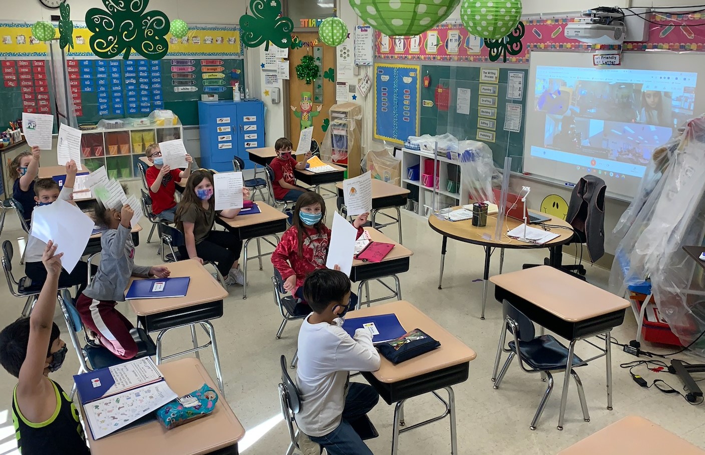 As part of the second grade writing curriculum, students are learning how to write a friendly, handwritten letter complete with grammatical content and sentence structure. To practice this new skill, writing teachers Katie Snodgrass at Gill Hall Elementary School and Nichole Matusz at McClellan Elementary School teamed up to provide each second grade student a pen pal from each other’s class. Students wrote letters to their second grade counterparts introducing themselves and shared information about their pets, favorite things, hobbies and interests. After all the letters were completed and collected, they were routed to their eagerly awaiting pen pals! As a special surprise, the teachers arranged a Google Meet where all of the second grade classes could meet and see each other virtually. It was a great opportunity for the students to see their pen pals in person (virtually) and put a face to the names! Now, students are writing back to their new pen pals and will continue to exchange letters as they build upon their writing skills. According to Mrs. Snodgrass, “It’s a wonderful opportunity to connect these students since many of them don’t really know each other yet, but they will all be coming together at Jefferson Hills Intermediate School as third graders next year.” Thank you to Mrs. Snodgrass and Mrs. Matusz for coordinating this special project, and great job by all of the second grade authors!