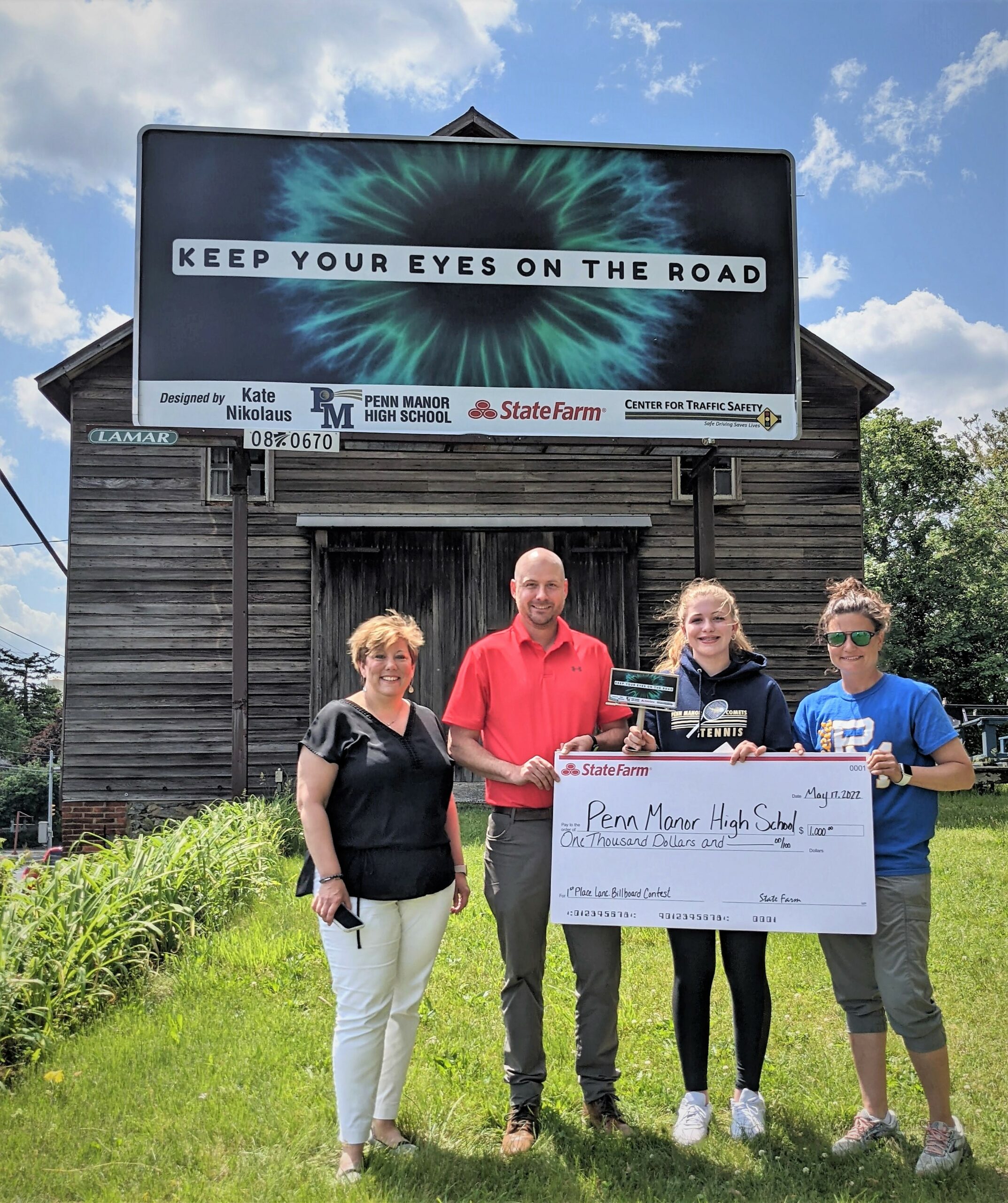 Their design is being used in social media messaging during May, Youth Traffic Safety Month. As part of their award, Penn Manor High School received $500 for traffic safety education. Kate’s billboard will remain along Route 462 for about a month. For her efforts, she received a $100 prize, and the high school received $1,000 for traffic safety education efforts.