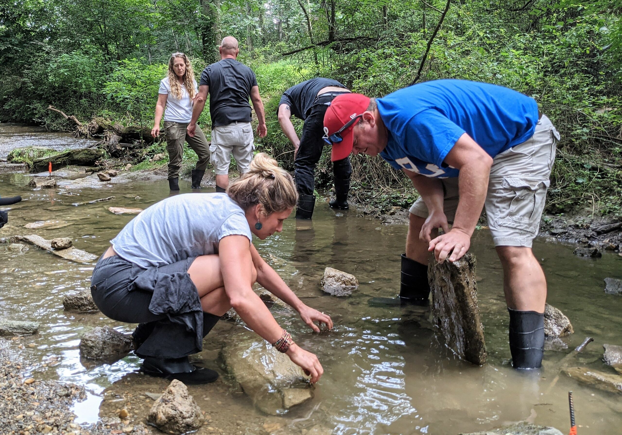 Hambright teachers look for specimens in a local stream as part of their watershed education training.Penn Manor School District is partnering with Millersville University (MU) on a $400,000 project to expand the teaching of watershed education in elementary schools. Millersville University has received a three-year grant from the National Oceanic and Atmospheric Administration Fisheries to train Penn Manor teachers and MU elementary education majors to educate students about the impact of human activity on local creeks, streams and rivers. Called “Shared Waters: An Upstream-Downstream Collaborative,” the project is a joint effort of Millersville University, Penn Manor, Virginia Wesleyan University and Norfolk Collegiate School.
