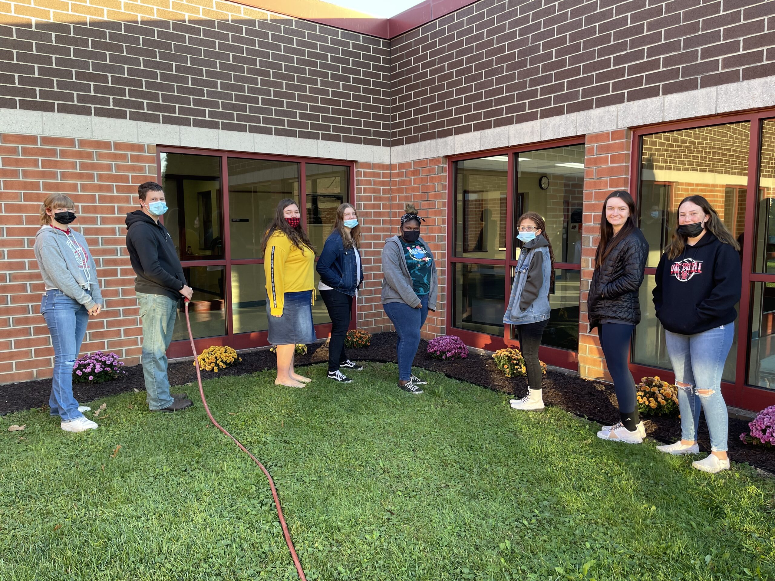 “With all the added responsibilities our maintenance and custodial staff has taken on recently, we have had to prioritize task lists and responsibilities. The middle school and administration entry areas have needed some attention and a group of students in the Garden Club took ownership of the area to transition into fall. Since all high school and middle school students walk past this area daily, it seemed like a great focal point for a project,” Karlie explained.