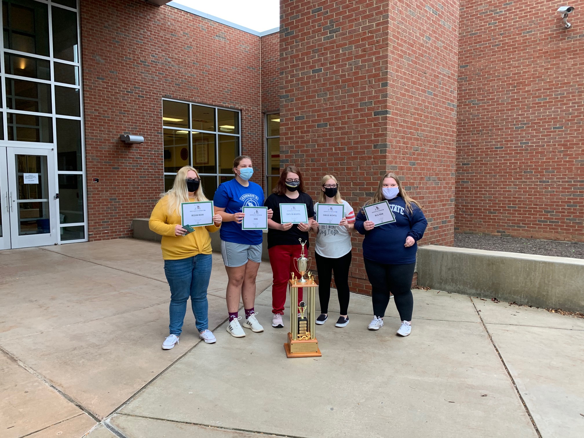 On Sept. 10, the Bellefonte Area High School Slay the Dragon team received prizes and a trophy from their tournament win last school year. Team adviser Melissa Duckworth said that due to the COVID-19 pandemic, the Centre County Youth Service Bureau was unable to hold its annual banquet, which is why YSB’s Prevention Services Director Ian Marquez stopped by the school to honor the team.