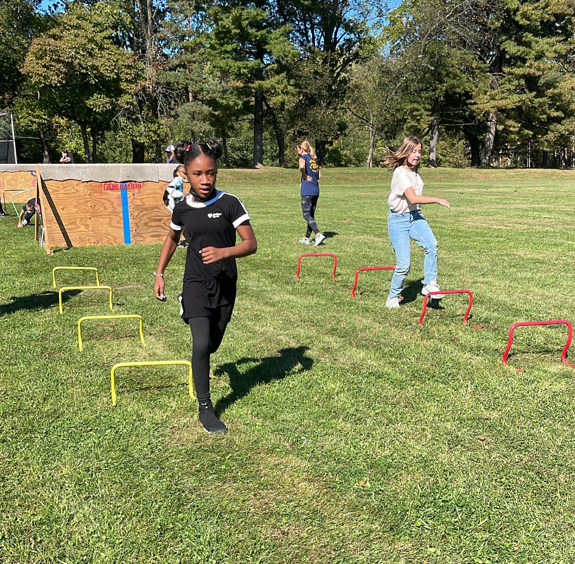 Students race through obstacles during the Blair Mill Fun Run.Blair Mill Elementary students ran through hula hoops, raced through agility ladders, soared through tires and scaled four-foot walls during the Blair Mill Fun Run on October 20, 2021. More than $5,000 was raised for the school. This obstacle course was created to support and thank families of Blair Mill for working hard to raise money for their school.