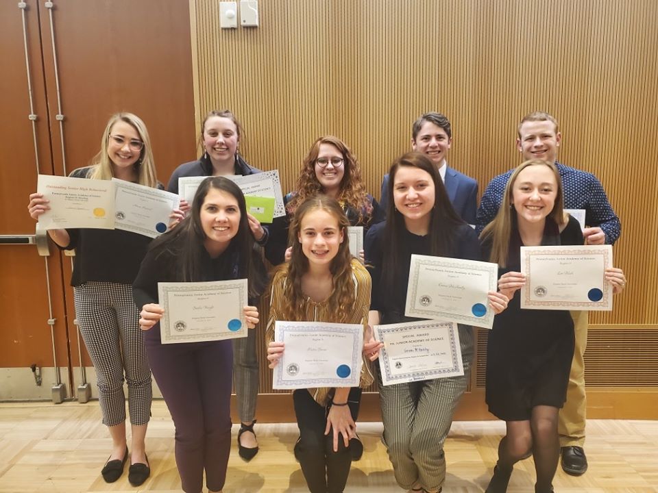 They will now travel to Penn State University in May to participate in the state competition. Jacob Brown received a second place award Abby Nibert, Emma McAnulty, and Alaina Popovich received a special award for their research projects.