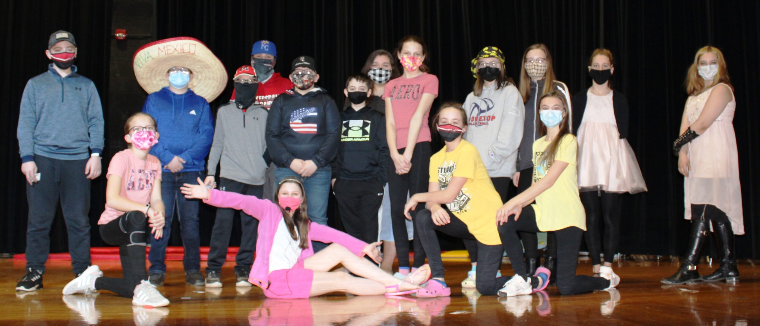 The following Meyersdale Middle School sixth grade students recently organized and performed a talent show for their Music class: (back row) Christopher DiPasquale, Easton Kalp, Aidan Thomas, Carter Vogt, Hunter Booher, Casey Kennel, Chalyce Miller, Kyleigh Blough, Sarah Hainsworth, Leah Eyer, Aurora Comfort and Abigail Ickes; and (sitting): Brooke Sell, Mallory Emerick, Madison Berkley and Nola Knopsnyder.Music classes have proved to be challenging in the midst of a pandemic, but with a bit of ingenuity, Meyersdale Area Middle School students have found ways to showcase their talents. Students in sixth grade have special classes, including music, on a rotating basis with the change of the nine weeks. Ms. Labrina Ritchey’s third nine-weeks rotation class found themselves a bit ahead of schedule with their music units and were moving on to discuss Broadway musicals. This topic was met with great enthusiasm.