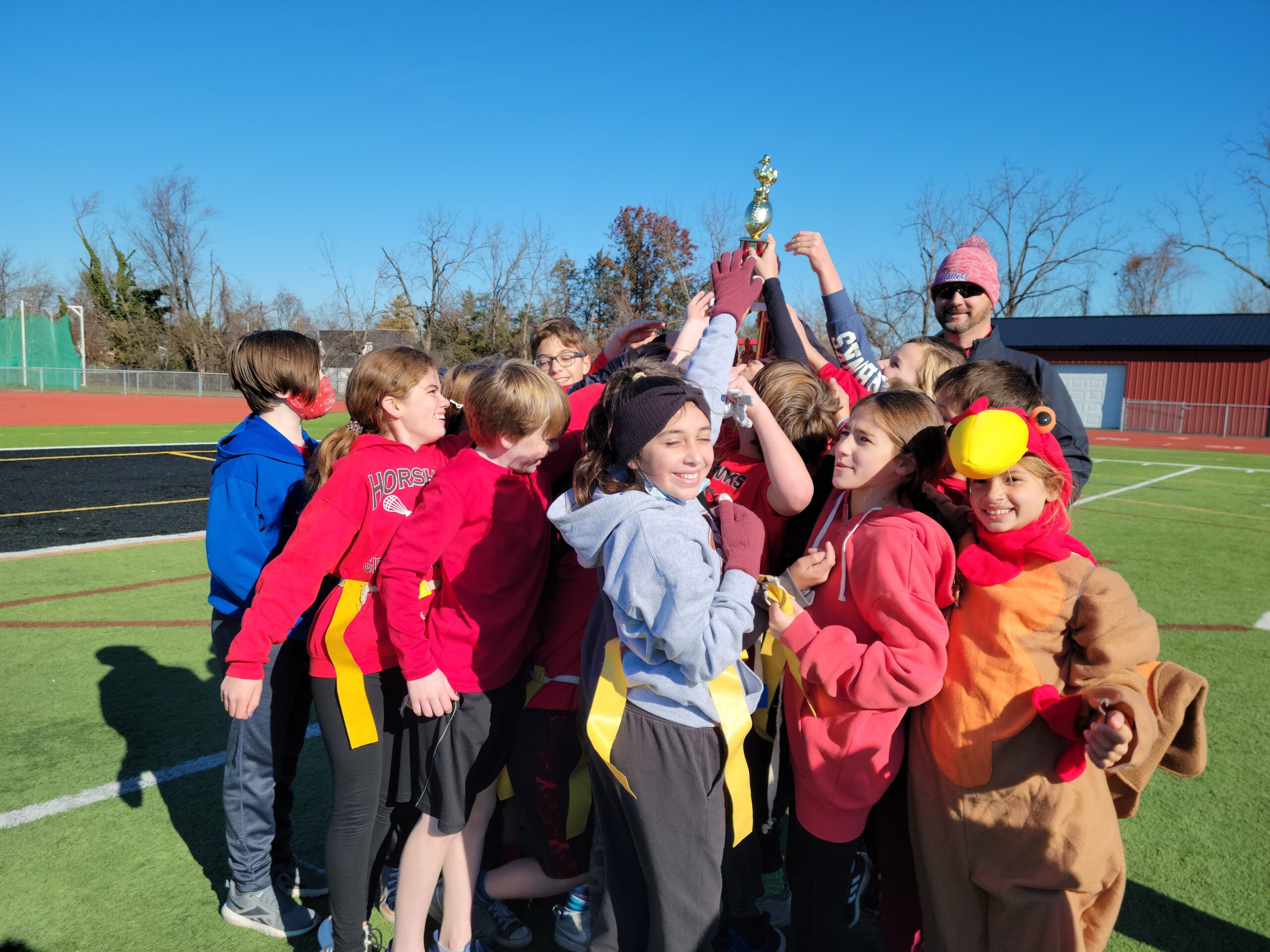 The goals of the reading challenge were to encourage students to foster a love for reading, create opportunities for students to talk about literature, and to promote the ideals of collaboration and fair play in athletic activities. The Turkey Bowl activity originates from a student favorite in physical education class called “Flicker Ball,” a combination of football and basketball. The pre-Thanksgiving game was held on November 24, at the Hatboro-Horsham School District’s football field. Mr. Moore’s class was the winning team!