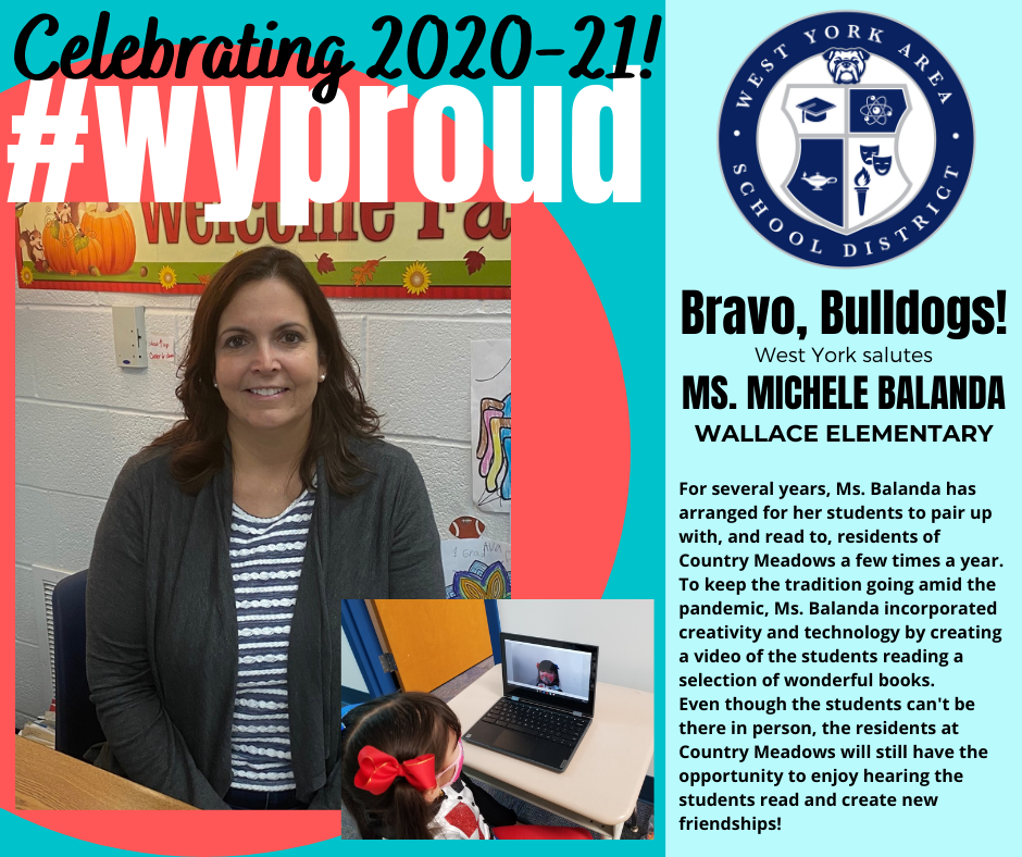 For several years, Ms. Michelle Balanda in the West York Area School District has arranged for her students to pair up with and read to, residents of Country Meadows Retirement Home a few times a year. To keep the tradition going amid the pandemic, Balanda incorporated creativity and technology by creating a video of the students reading a selection of wonderful books. Even though the students can’t be there in person, the residents at Country Meadows will still have the opportunity to enjoy hearing the students read and create new friendships!